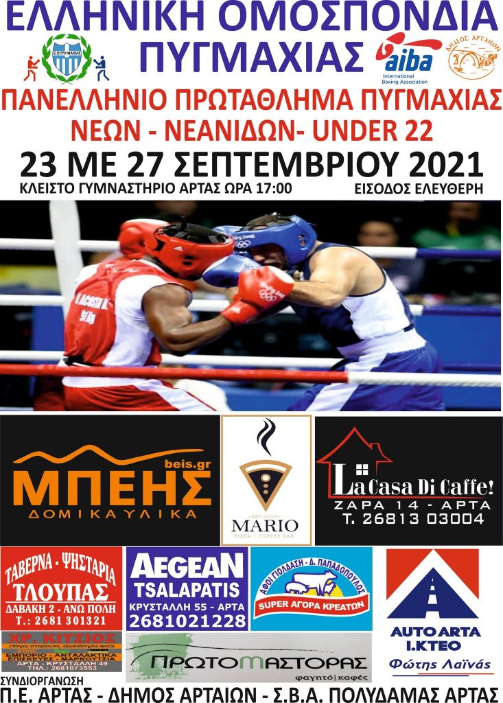 Ένα ακόμη αθλητικό γεγονός διοργανώνεται στην Άρτα. Η Ελληνική Ομοσπονδία Πυγμαχίας, σε συνεργασία με τον Δήμο Αρταίων, την Περιφερειακή Ενότητα Άρτας και τον Σ.Β.Α Πολυδάμας Άρτας, διεξάγει το Πανελλήνιο Πρωτάθλημα Πυγμαχίας Νέων/Νεανίδων & Ανδρών/Γυναικών Under 22.